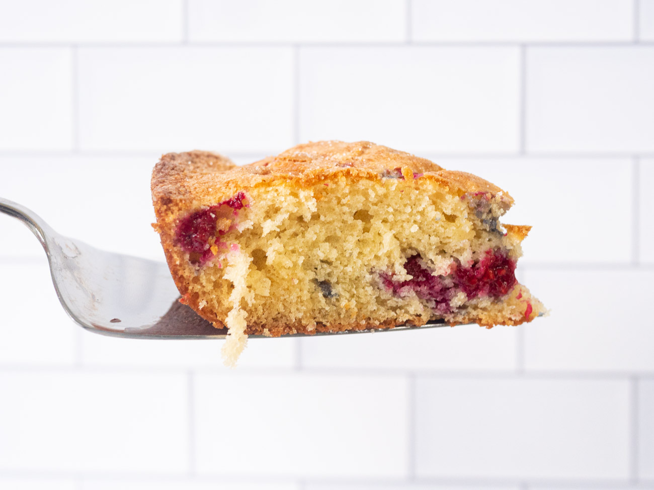 Using minimal ingredients is essential in one-bowl baking so it’s good to use one of those ingredients that have an impactful flavor. Yes, we’ve used raspberries in our One-Bowl Raspberry Lemon Cake, we couldn’t resist and use them again in this Raspberry Buttermilk Cake. Raspberries are a great fruit for quick one-bowl baking as they hold shape and have a sweet and tart bite. The buttermilk brings raspberries’ tart zippiness into focus without overwhelming the natural fruity flavor. Bought fresh or frozen, raspberries don’t burst in the batter or make weird pockets of soggy cake. If you weren’t a fan of the fruit before, you’ll definitely like it now.