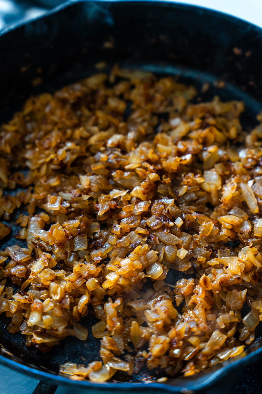 Now, some people see the phrase ‘caramelize some onions’ and it strikes fear into their hearts. It need not be so. Yes, it takes a while and you can’t rush it. But since it’s happening over low heat, you also don’t need to stand over the stove and babysit it too much. You can multi-task. Do some other kitchen things. And it’s always, always worth it.