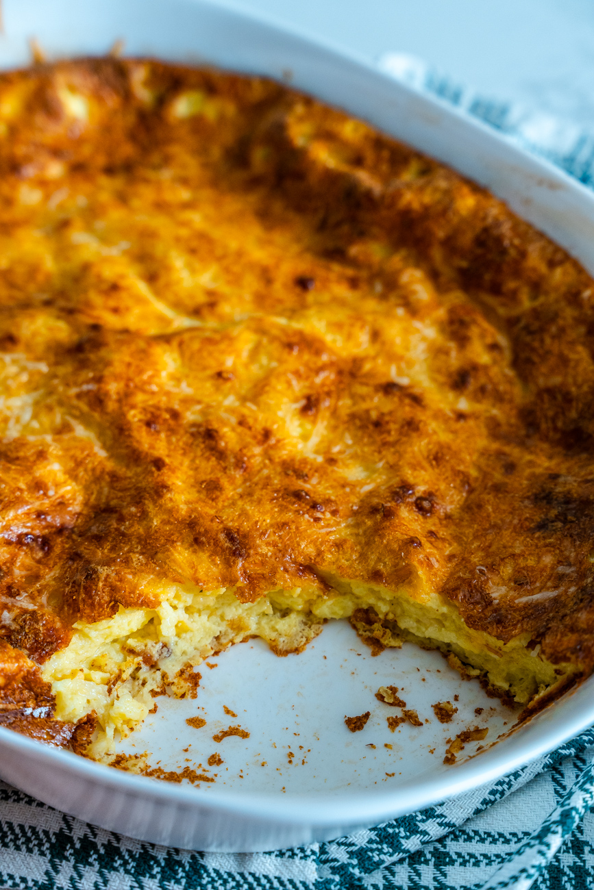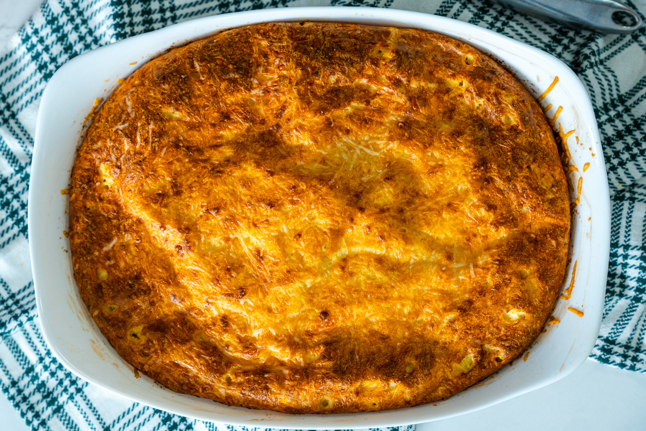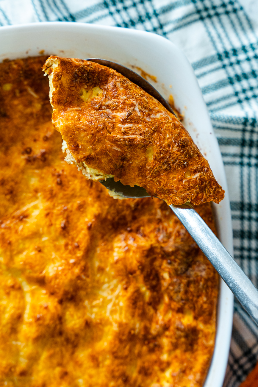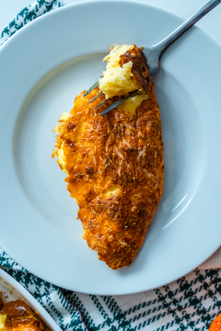 It’s a legendary dish in French cooking, the soufflé. Legendary for many reasons, perhaps notorious, even, because of one inevitable consequence of a soufflé: that it falls. Soufflés are intended to come out of the oven as light, airy, nebulous domes of egg-whipped cheesiness. It’s the seemingly effortless rise of the soufflé that makes it legendarily intimidating. I’ve found a hack, as they say, one that delivers the soufflé experience without the soufflé fussiness.
