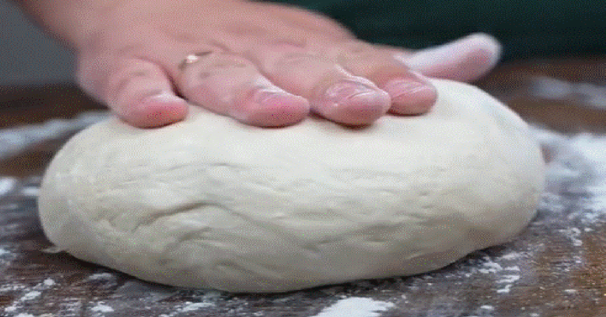 He’s managed to recreate the elusive pie and the results are absolutely amazing. To get started, he took some homemade dough and folded shredded mozzarella inside of the crust.