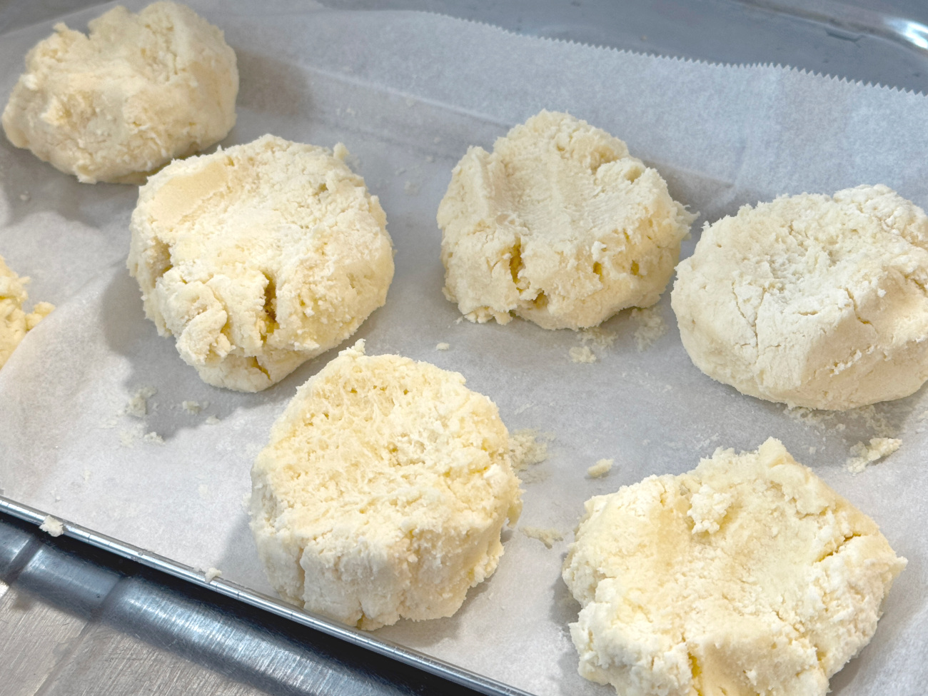 Once the cookie dough is portioned out, rolled, and pressed down, the cookie dough is chilled for a minimum of one hour.