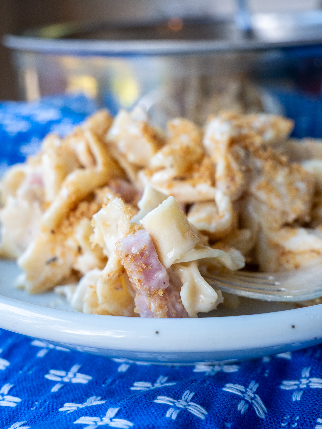 You can think of it kind of like a deconstructed Chicken Cordon Bleu, with the addition of noodles. (In other words, delicious.) The great news is that it’s really easy too. Here’s how it comes together: