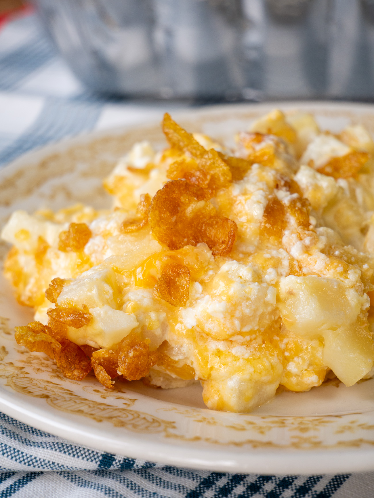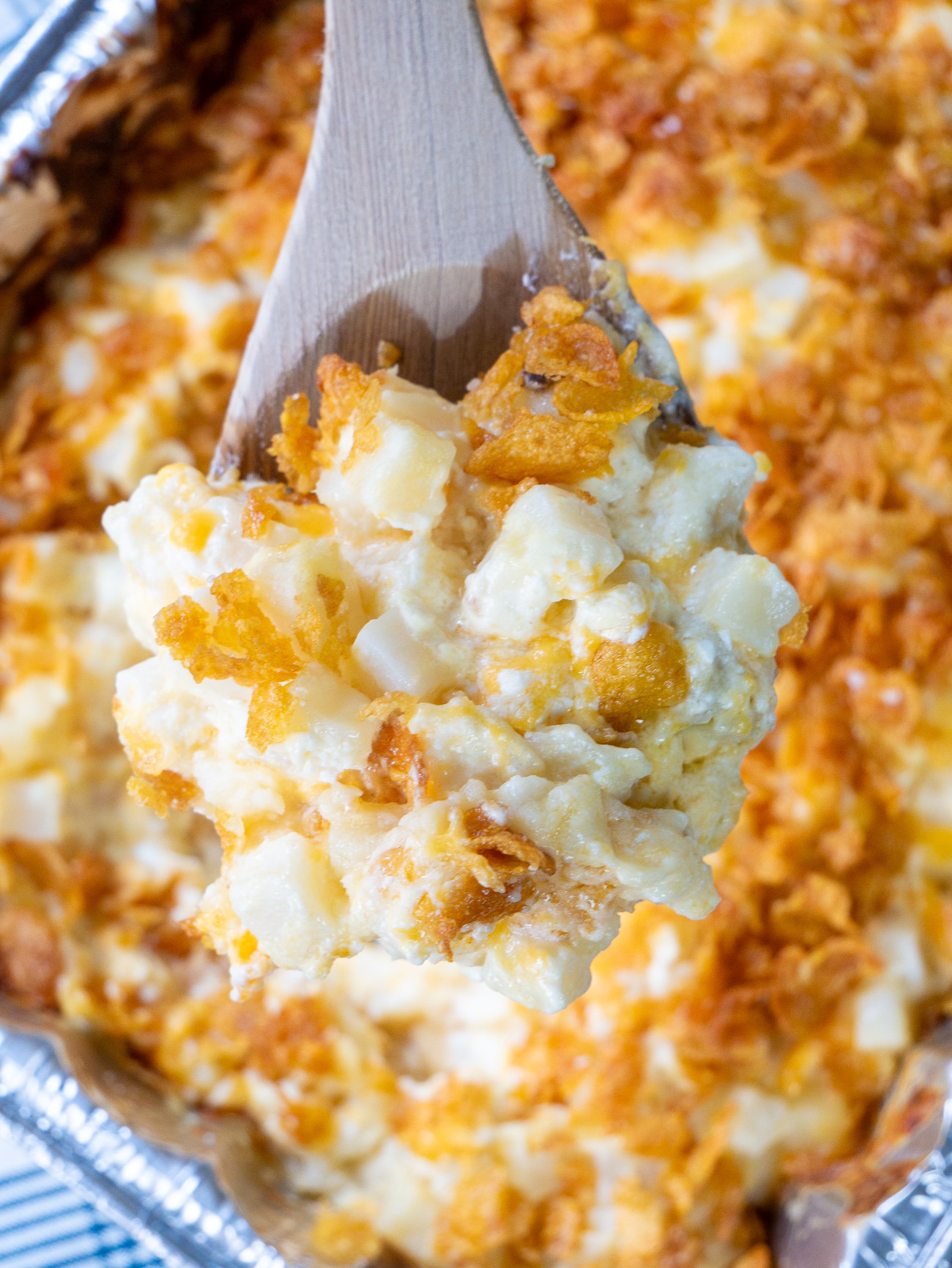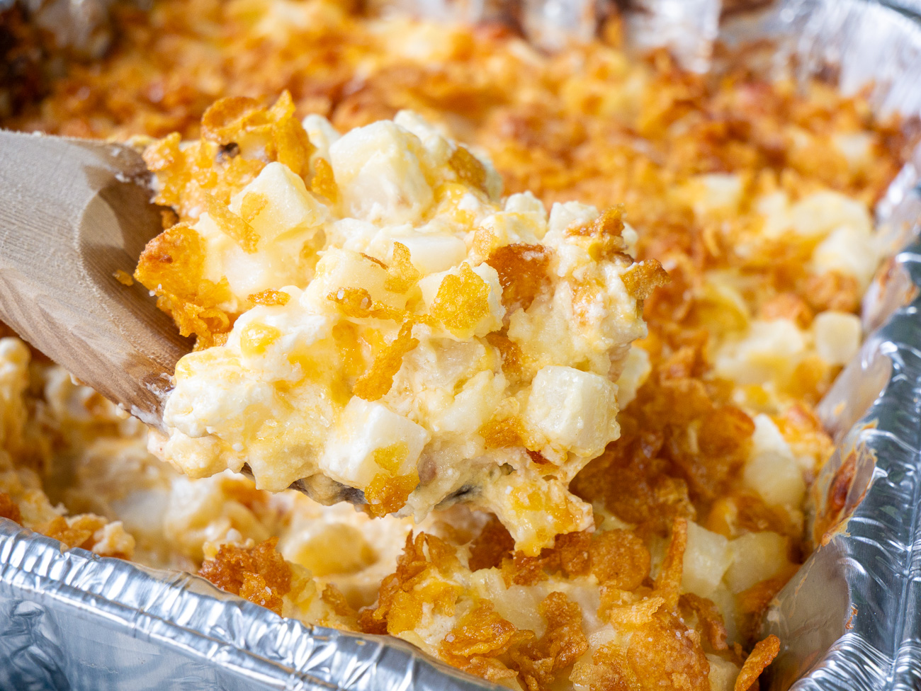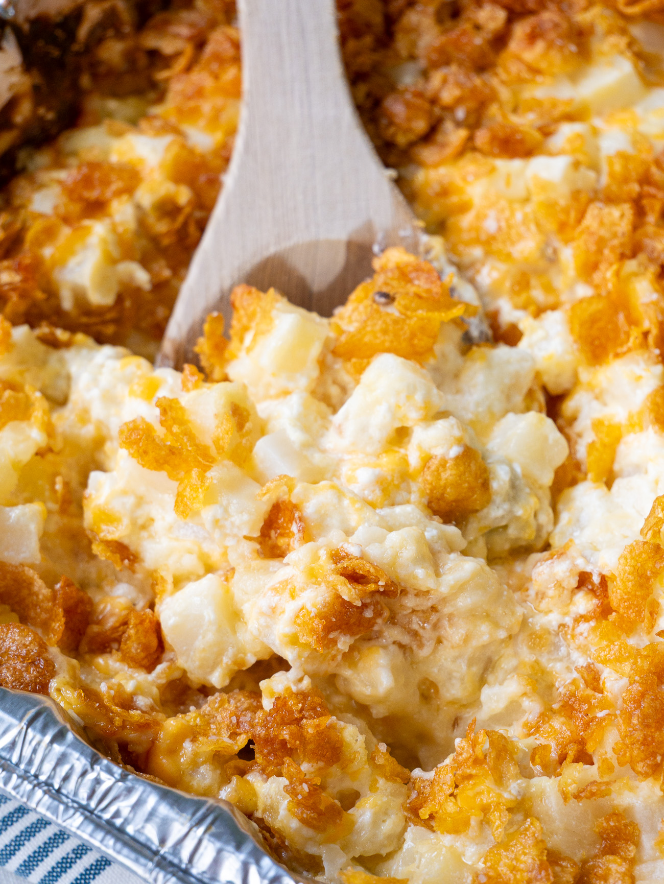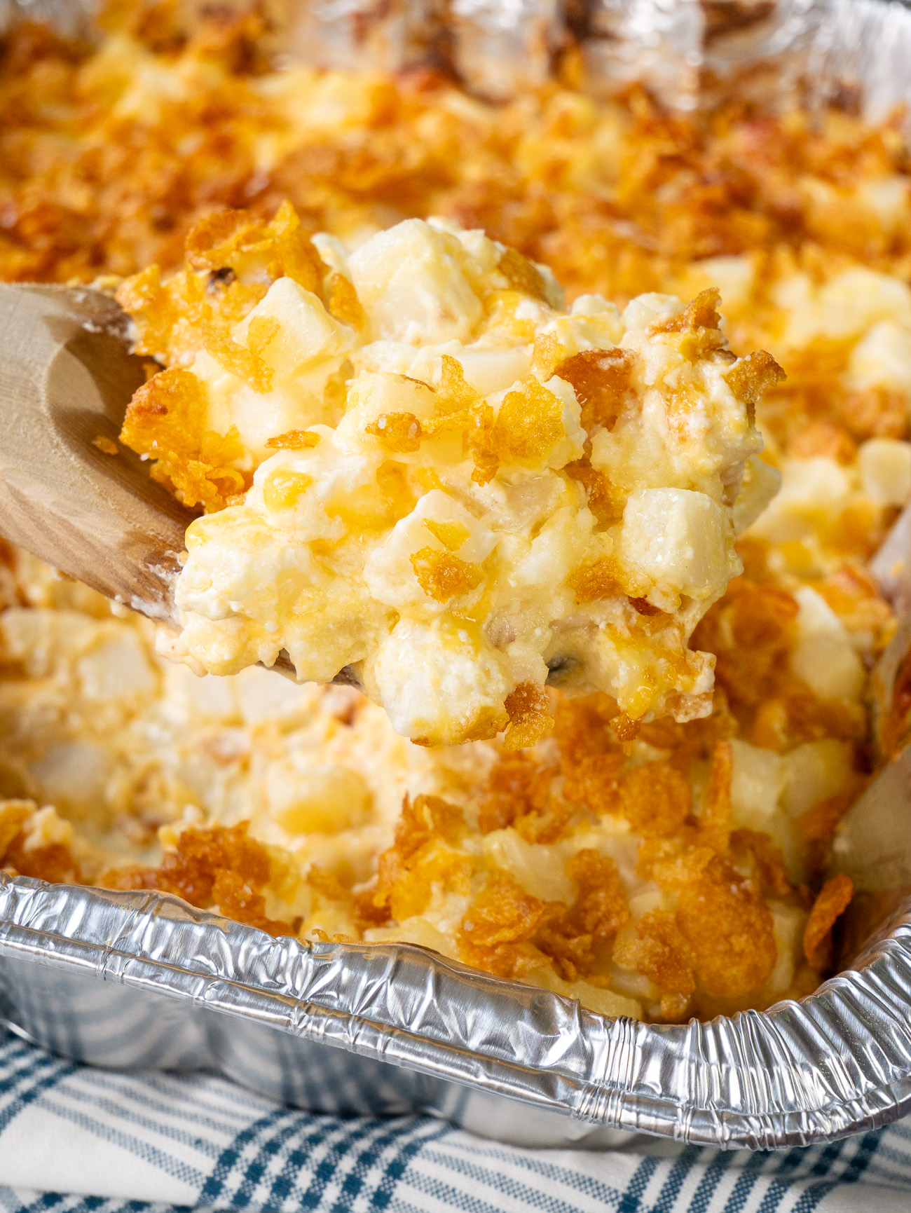 If you’re from the midwest, especially, you’ve probably seen these potatoes grace your table or a table near you more than once. They’re a potluck, party, and holiday staple but they go by many names. Call ’em funeral potatoes, call ’em party potatoes, call ’em hash brown casserole… it doesn’t change how delicious and comforting they are or how easy they are to make. (And you can’t beat that crunchy topping.)