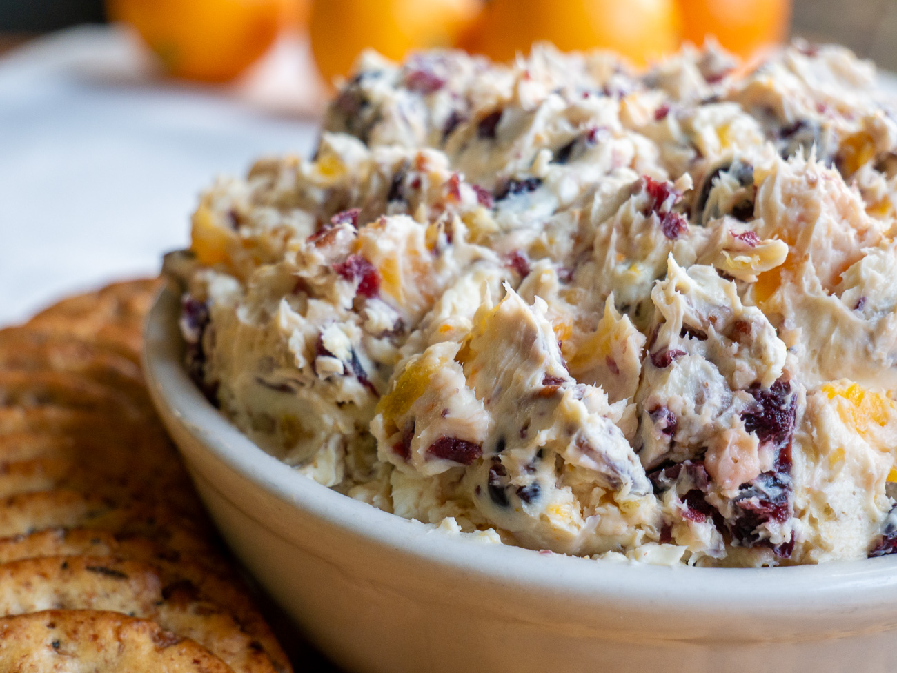 - In a bowl, beat the cream cheese, orange zest, cranberries, and apricots with an electric mixer until well blended.