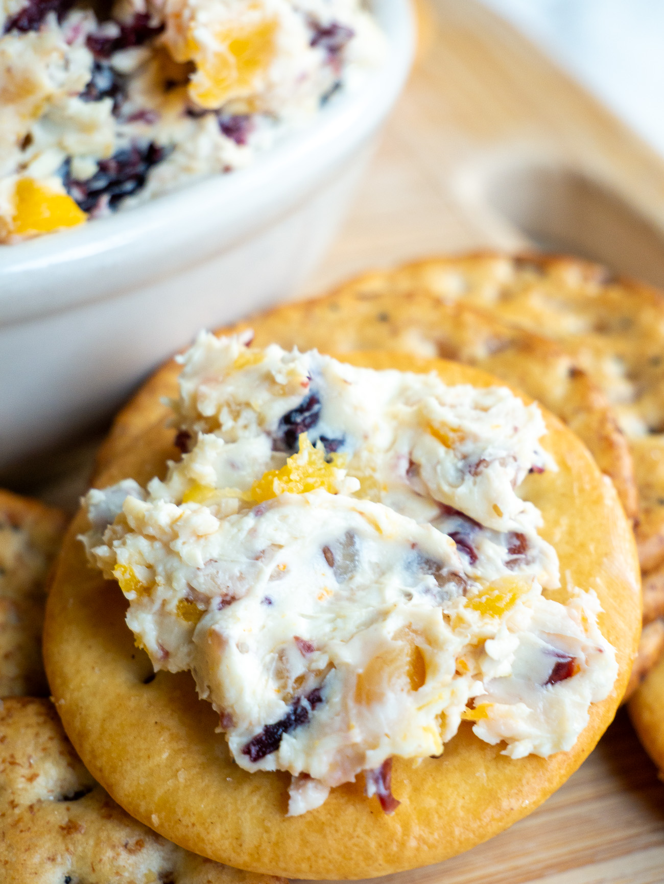 I cannot think of an occasion where I don’t love to see a cheese plate. There is nothing better — or more simple — than setting out a variety of cheese and pairing it with some crackers, nuts, and/or dried fruit. But as good as that is, I find it really elevates the whole thing to pair it with a simple spread like this. One that uses wallet-friendly cream cheese, comes together in mere minutes, and balances so many bright and vibrant flavors. This spread is easy to make and it goes a long way, which is great news because it sure is a crowd-pleaser!
