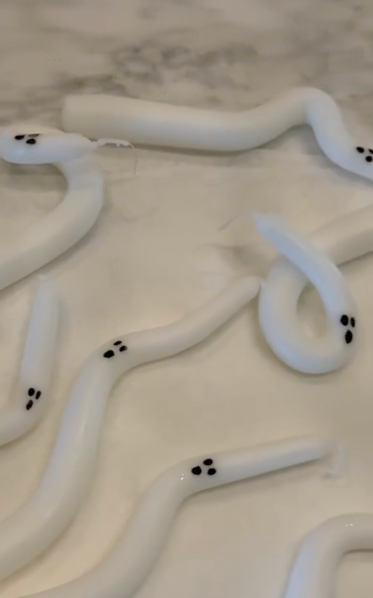 Get a bit of spirited spookiness to your table! Here, ghost candles get their free-floating shape thanks to this simple trick.