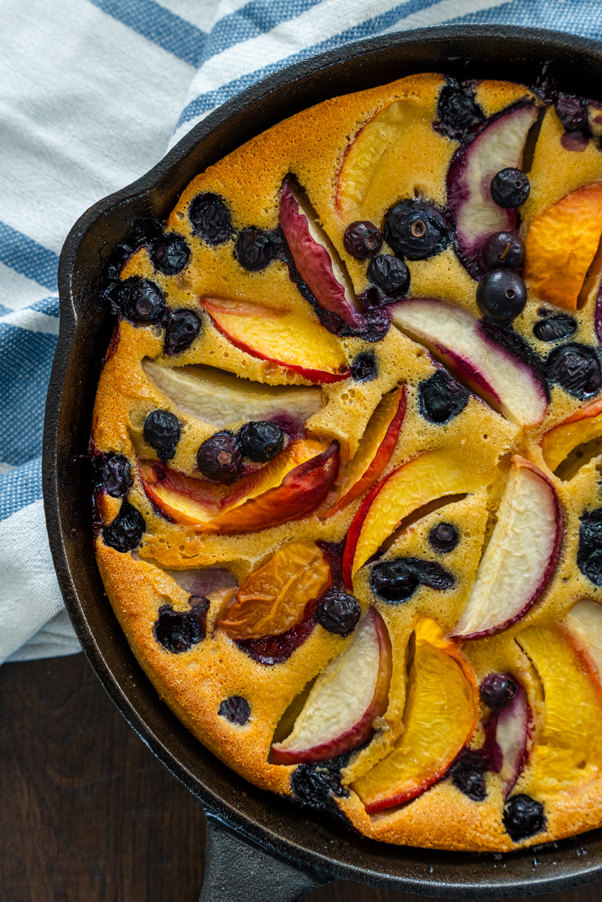 When you want to highlight the glory that is fresh fruit, then this recipe for French Fruit Clafoutis is a must. A quick from-scratch batter is poured into a cast iron skillet and dotted with fresh fruit and baked until golden perfection.