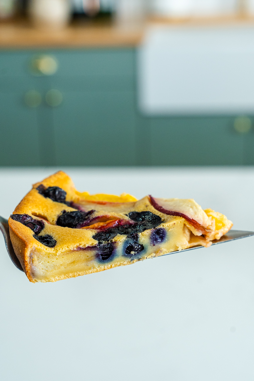 Sliced and served, this French Fruit Clafoutis is the perfect bite. The fruit-forward flavor isn’t weighed down by the batter, making it light and refreshing.
