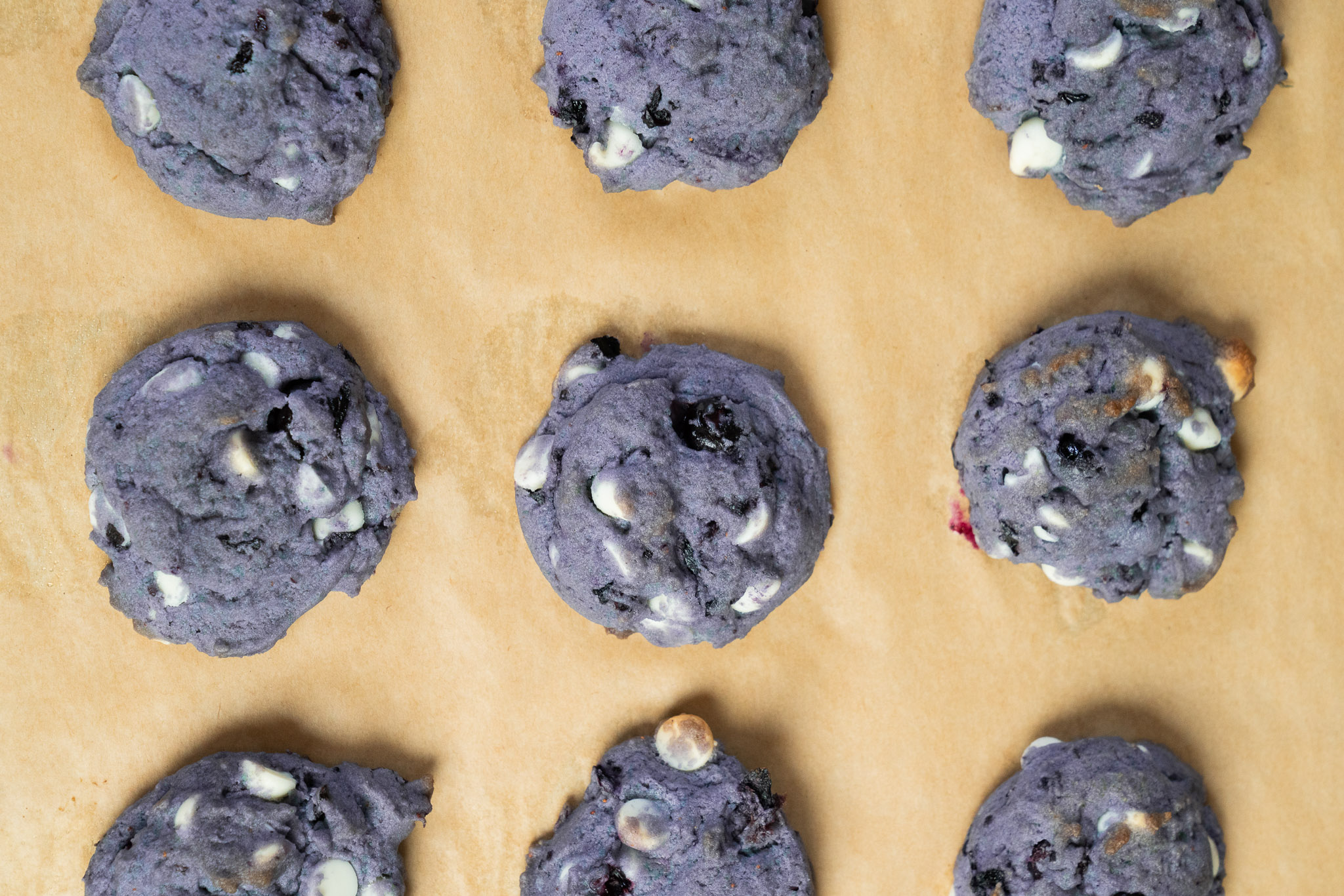 If I was stranded on a desert island and could only have one food, I very well might pick blueberries. They are a top tier fruit in my opinion, and I have no restraint when they’re in the house. So, when I came across a recipe for these Frozen Blueberry Cookies, it instantly went into my “To-Try” folder. Their gorgeous purple color and use of real berries had me more than intrigued.