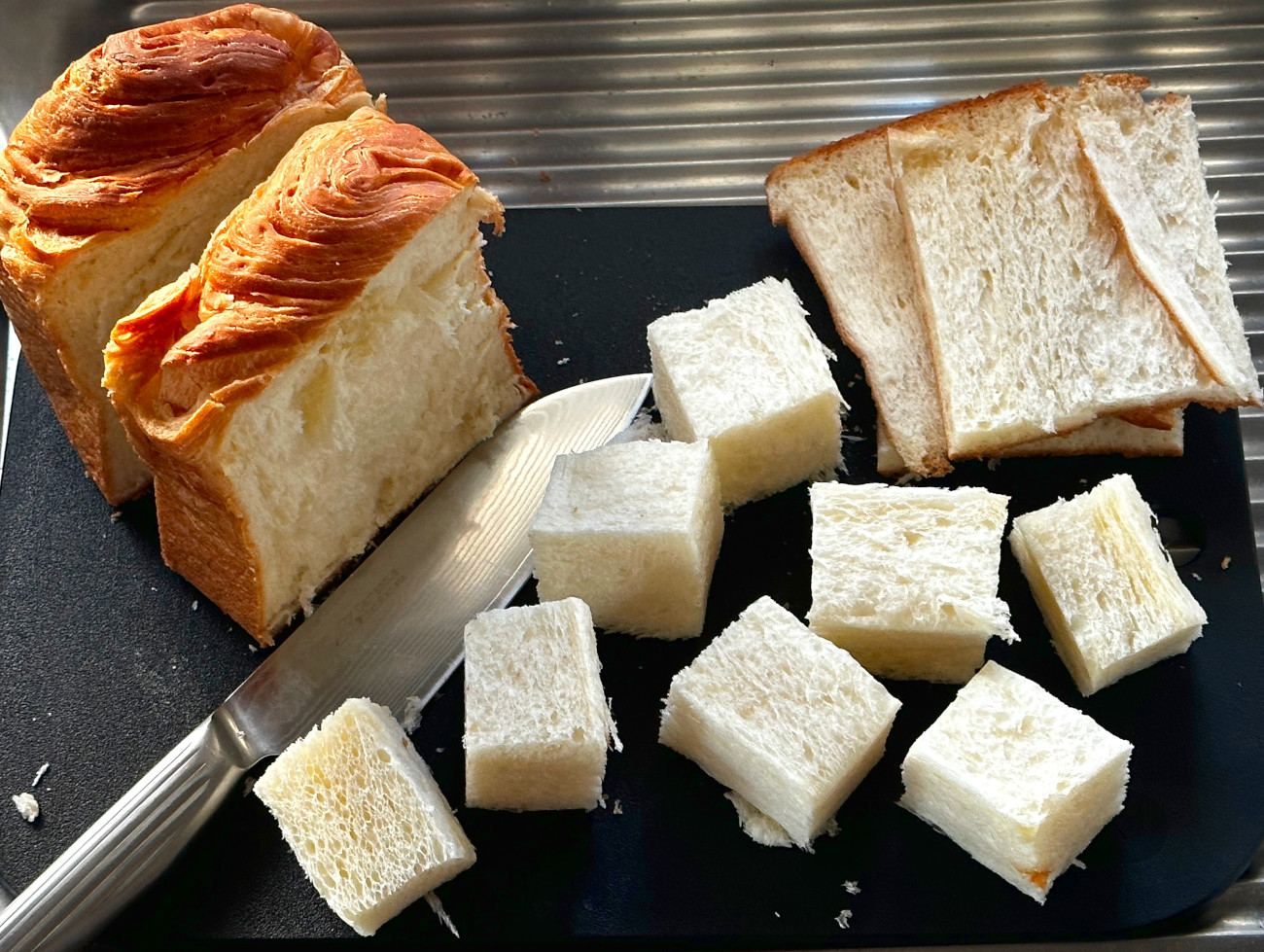 - 1 white loaf or any thick soft bread, crust removed and cut into 2-inch cubes