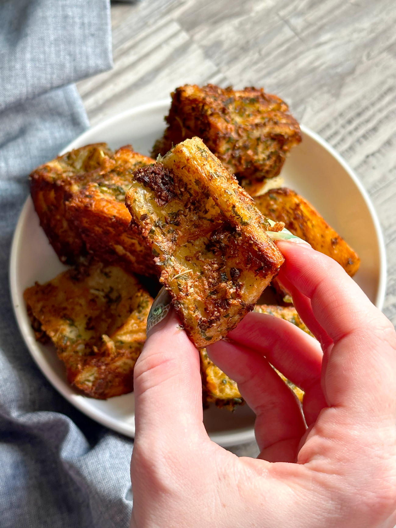 These cubed bites of garlic bread are a game charger. All sides of the bread are packed with flavor. You’re not left with acres of plain unseasoned bread. The outsides are crispy, but the insides are pillowy, and each bite is truly better than the next. You’ll eat them on their own, no entree is required here.