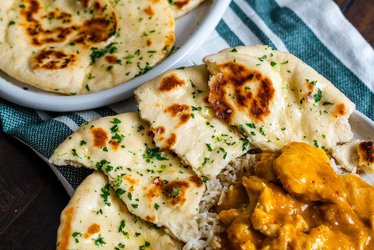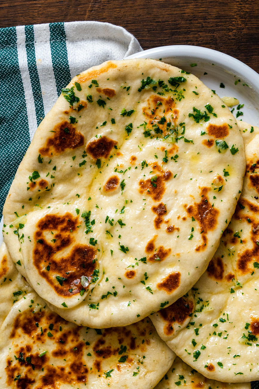 I never knew the difference between pita bread and naan when I first discovered these flatbreads. After working in the restaurant for a while. It’s a yogurt based dough that’s slightly doughier than pita bread, but it needs all that strength to help pick up curries and other foods with. As delicious as this flatbread is, naan is a carrier bread for other veggies, sauces, dips, and proteins. It’s a wonderful experience and I’m going to show you how to make it at home.