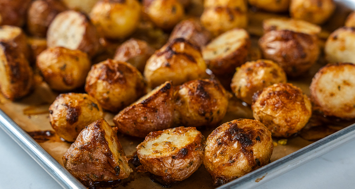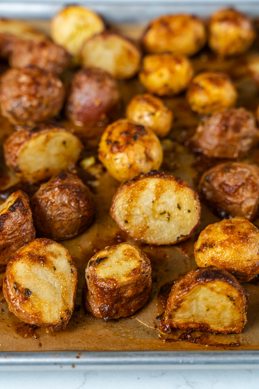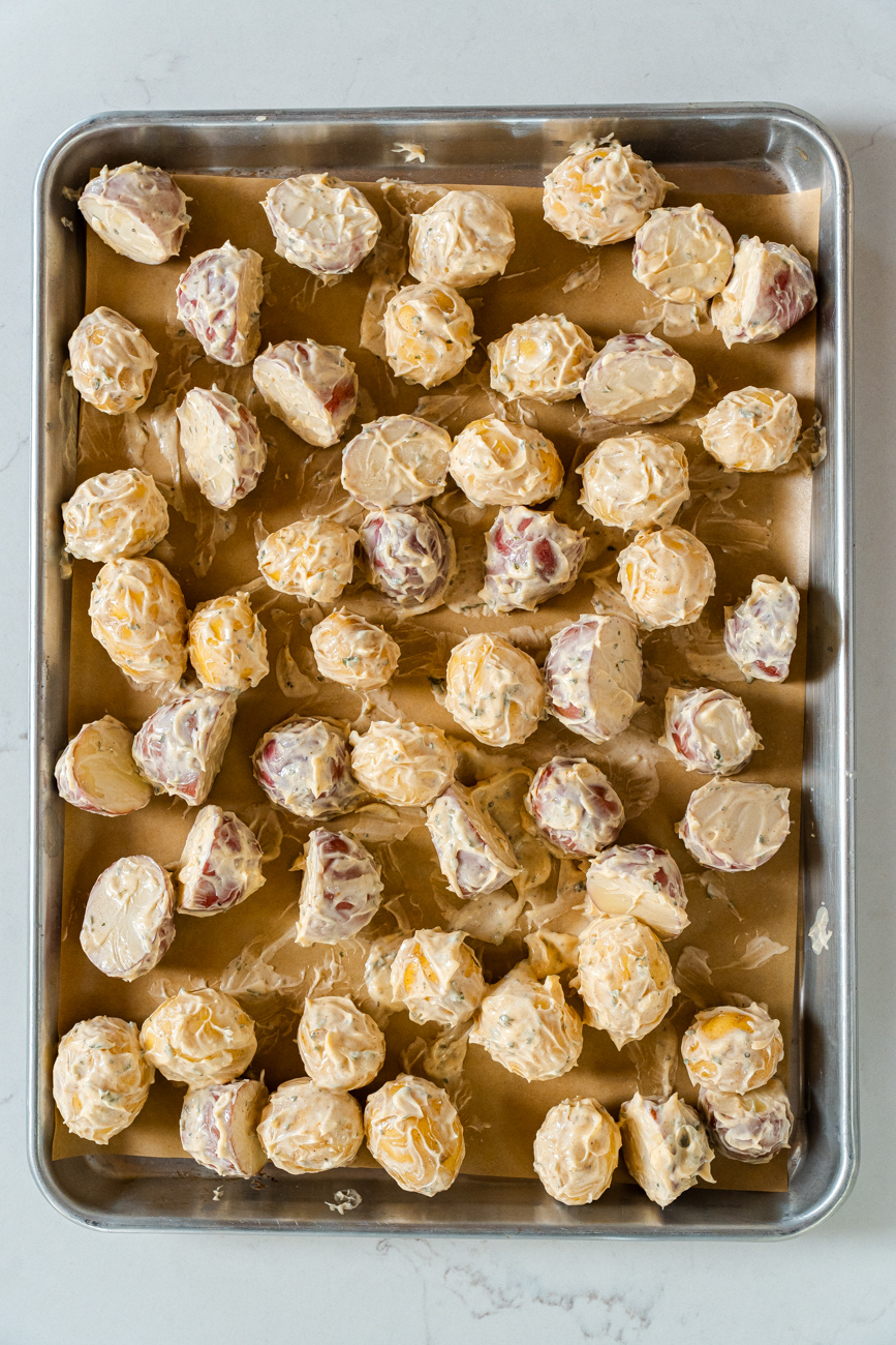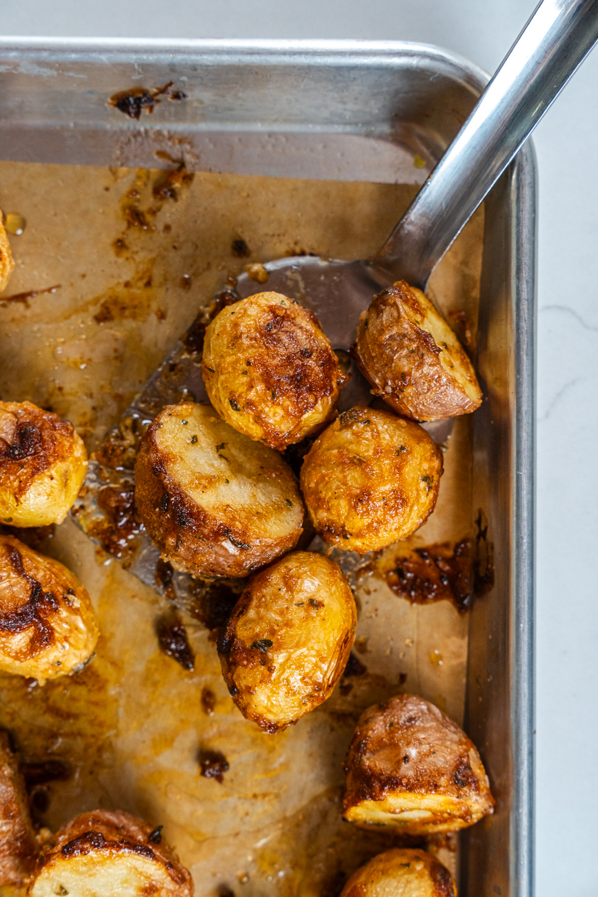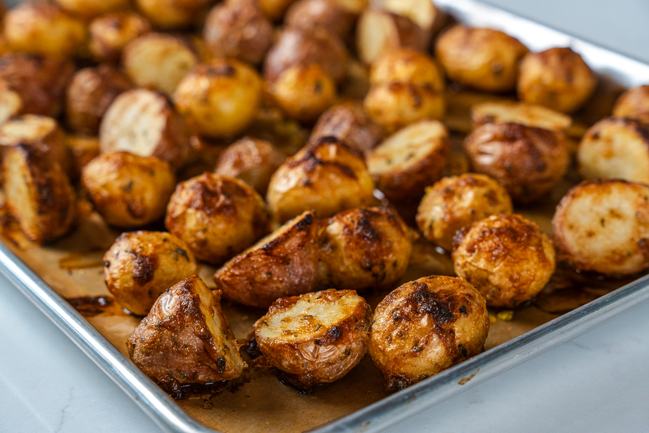 Spread the spuds onto a prepared baking sheet and roast until the outside is crispy and the inside is fork-tender.