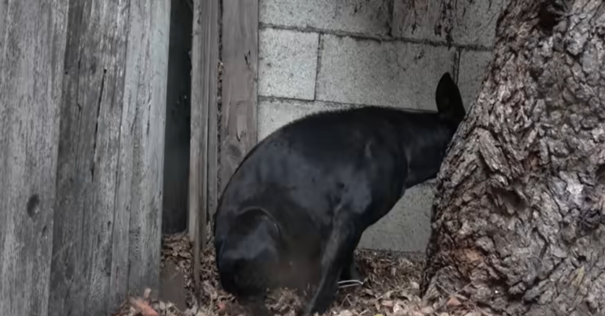 The poor pup was found on someone’s property hiding under a shed. No one is sure how she got there or where she’d come from, but she wouldn’t let anyone near her.