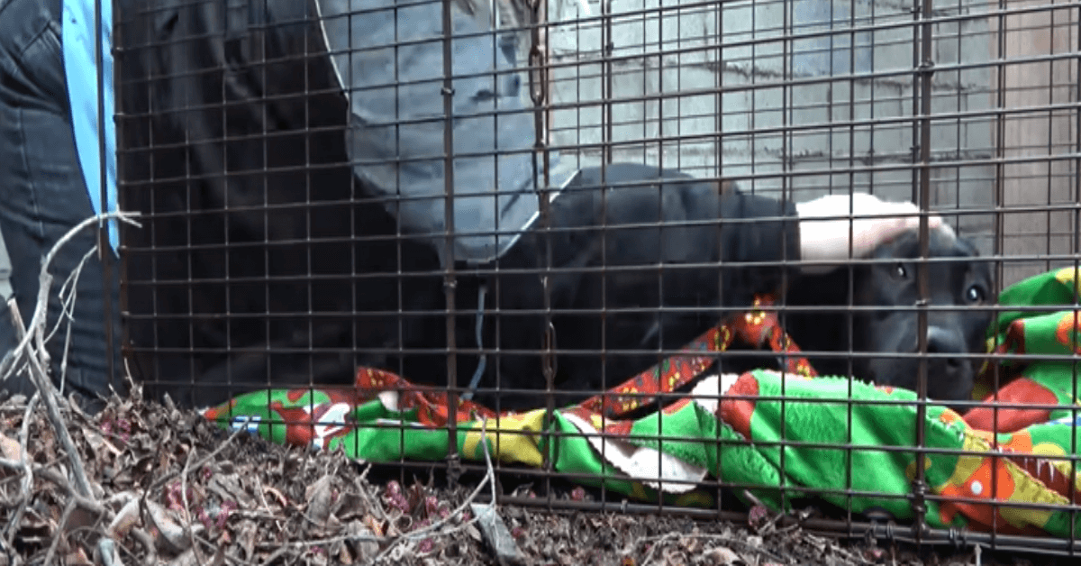 JoAnn tried to offer the dog some food to gain her trust, but the poor thing was too terrified to eat. She was shaking and cowering, but rescuers were able to gently snare her and pull her out of hiding.