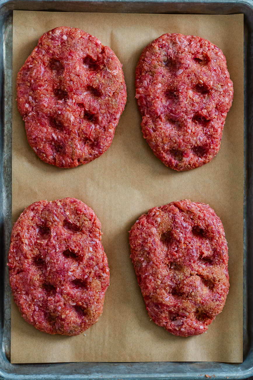 Giving the patty indentations gives it the classic “grill marks” but also adds great variety in texture on the outside of the patties.