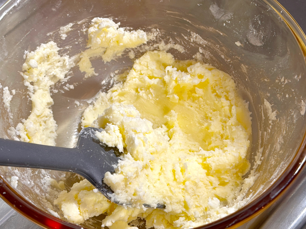 Panko is not an ingredient we use in our desserts, but in this recipe, panko gets to see the sweeter side of the kitchen. After the butter and powdered sugar are creamed together, almond and vanilla extracts are added, followed by the flour and panko. Make sure you are using plain, unseasoned panko; we don’t want a sweet-savory sort of deal going on here.
