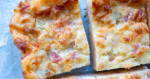 … and then you’ll add a mixture of heavy cream, eggs, and vanilla. It’s a richer dough than other shortcakes I’ve had and I LOVE it. It’s delicious all on its own, but even better paired with whipped cream and berries. You don’t have to roll it out or find a biscuit cutter… just press it into a jelly roll pan and bake it for fifteen minutes or so.