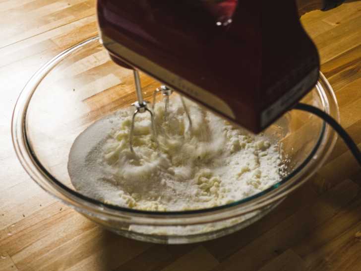 - Add vanilla and eggs and mix on medium speed until well combined, about 1 minutes.