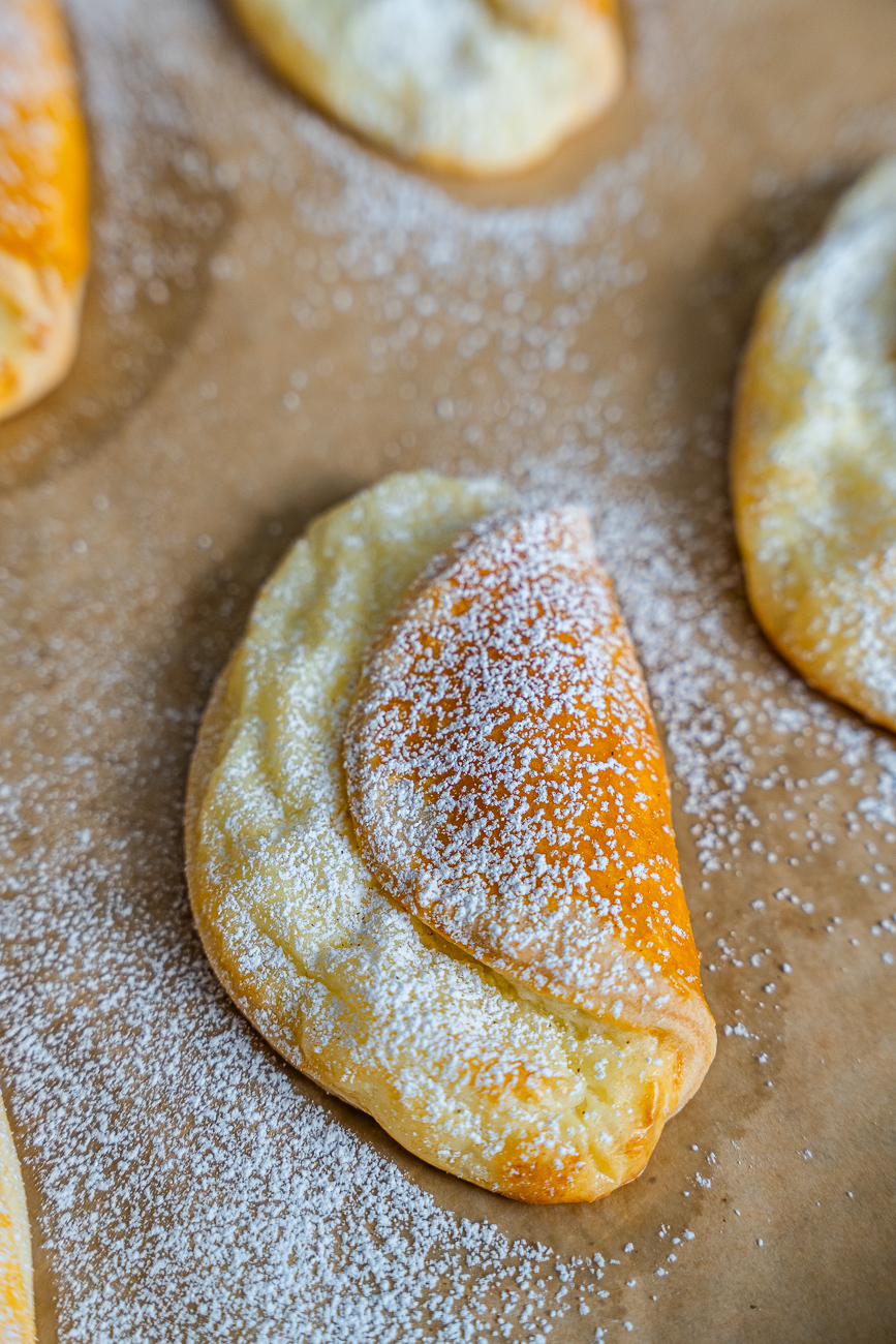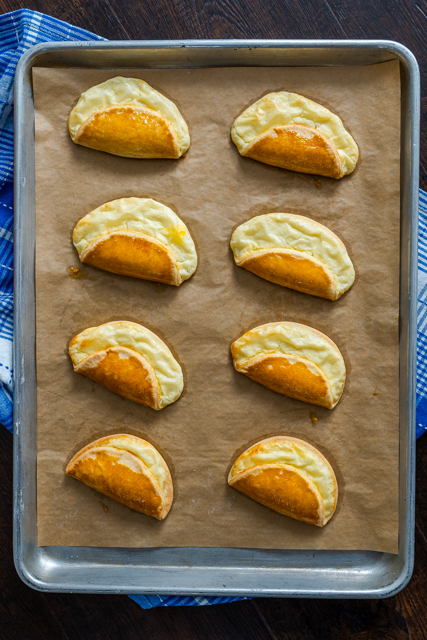 They are a cookie that looks plain but are far from plain in flavor. They were a canteen sweet treat during the Soviet bloc, seen commonly in both regions of Russia and Ukraine. Originally, they are made with a thick tvorog or smetana, which is comparable to farmer’s cheese. Since farmer’s cheese isn’t always a given in supermarkets, cottage cheese is a common substitution.