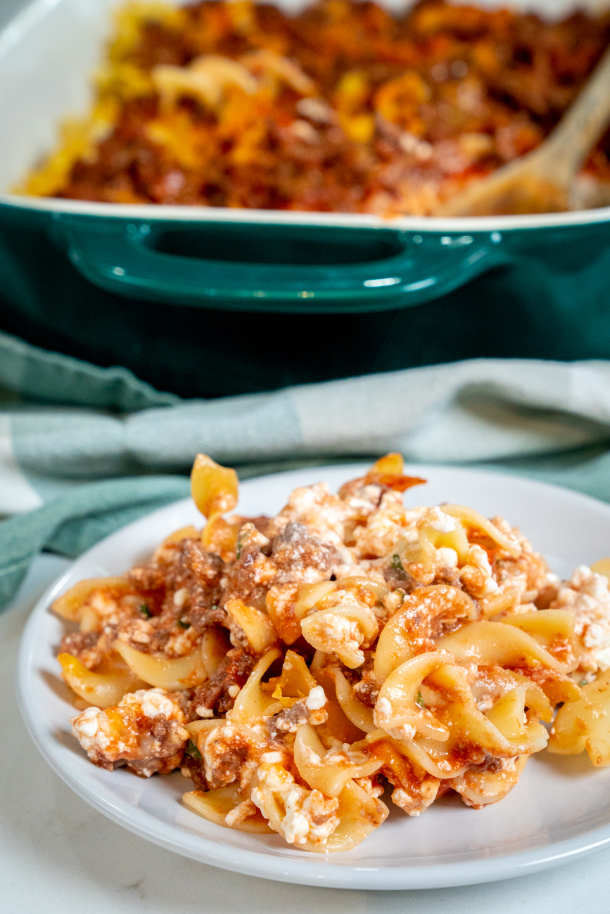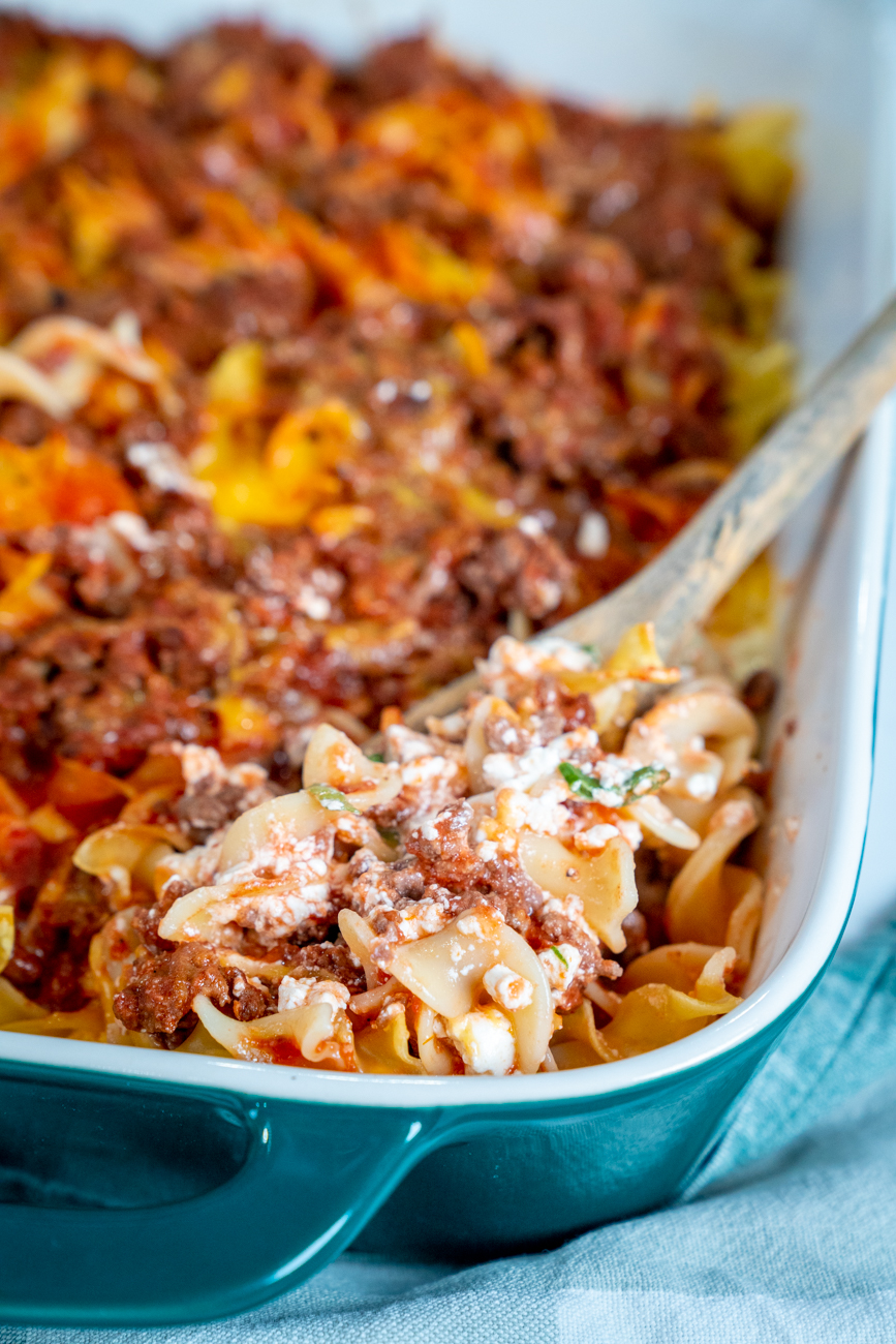 And here’s how it tastes — it has the carbalicious comfort of pasta but that’s paired with a beefy tomato sauce that’s so straightforward and simple that you can adequately focus on all the creaminess running throughout this bake. And while sour cream and cottage cheese might seem odd in a pasta dish (it’s certainly not traditionally Italian), I’d like to say, don’t knock it til you try it. It’s a little basic in flavor maybe, but this hits all the right nostalgic comforting notes.