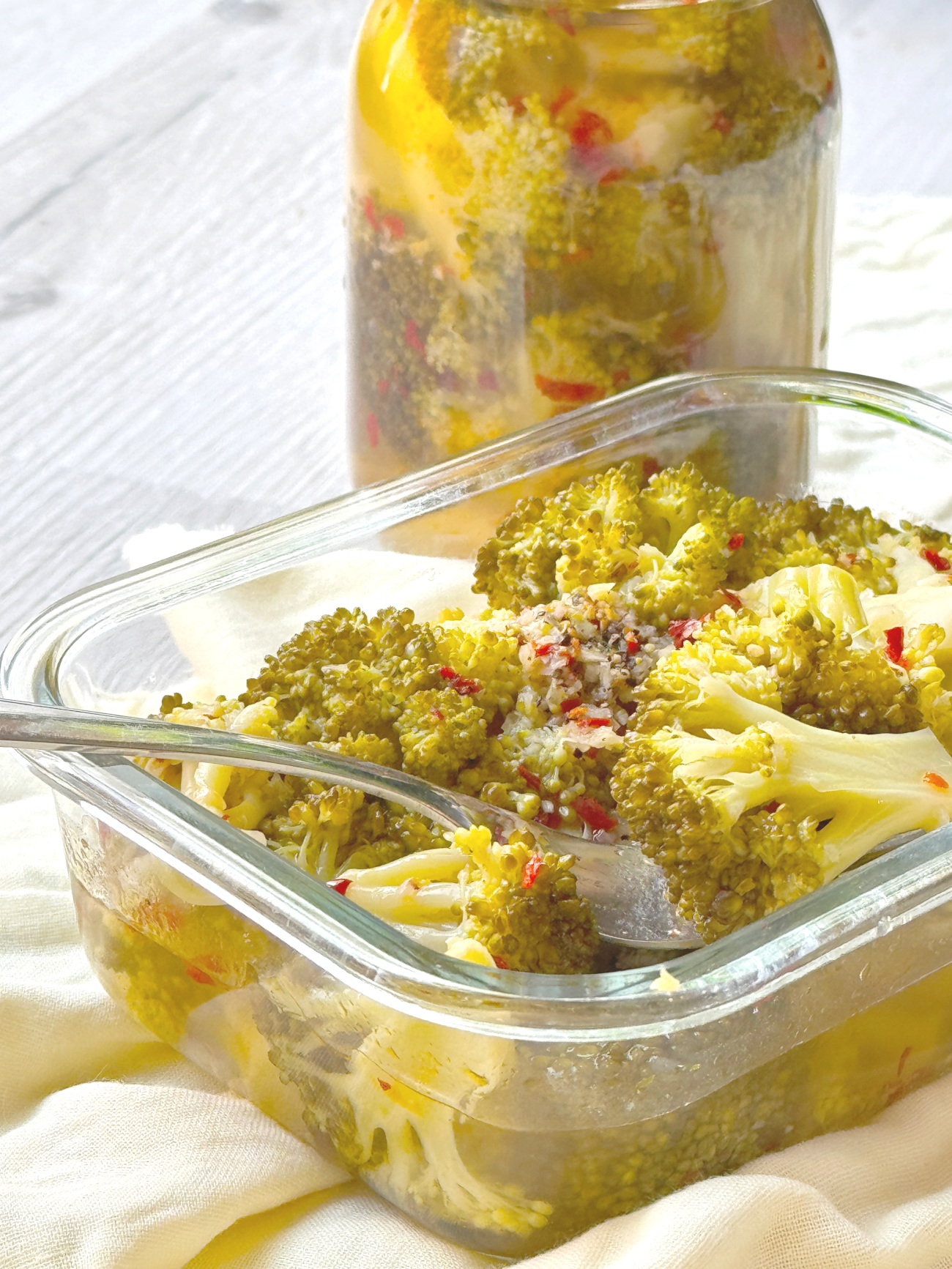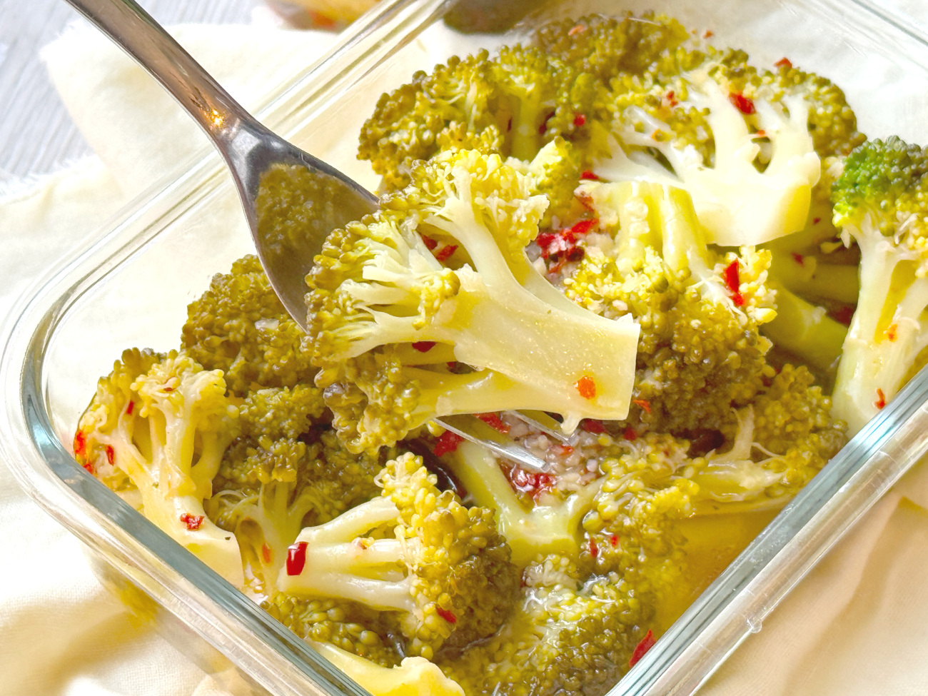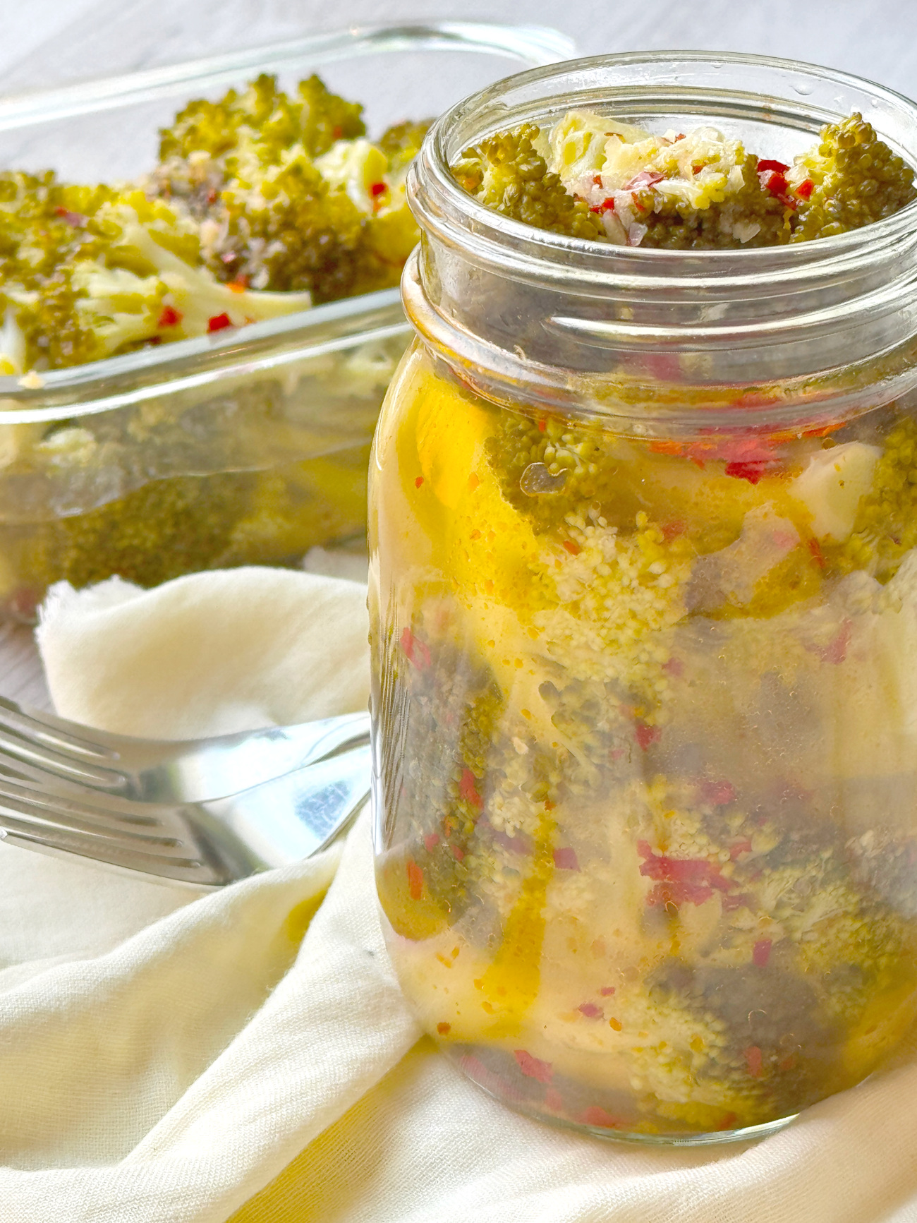 This recipe for Spicy Pickled Broccoli needs a minimum of one hour of marinating before serving, but you can marinate it for longer.