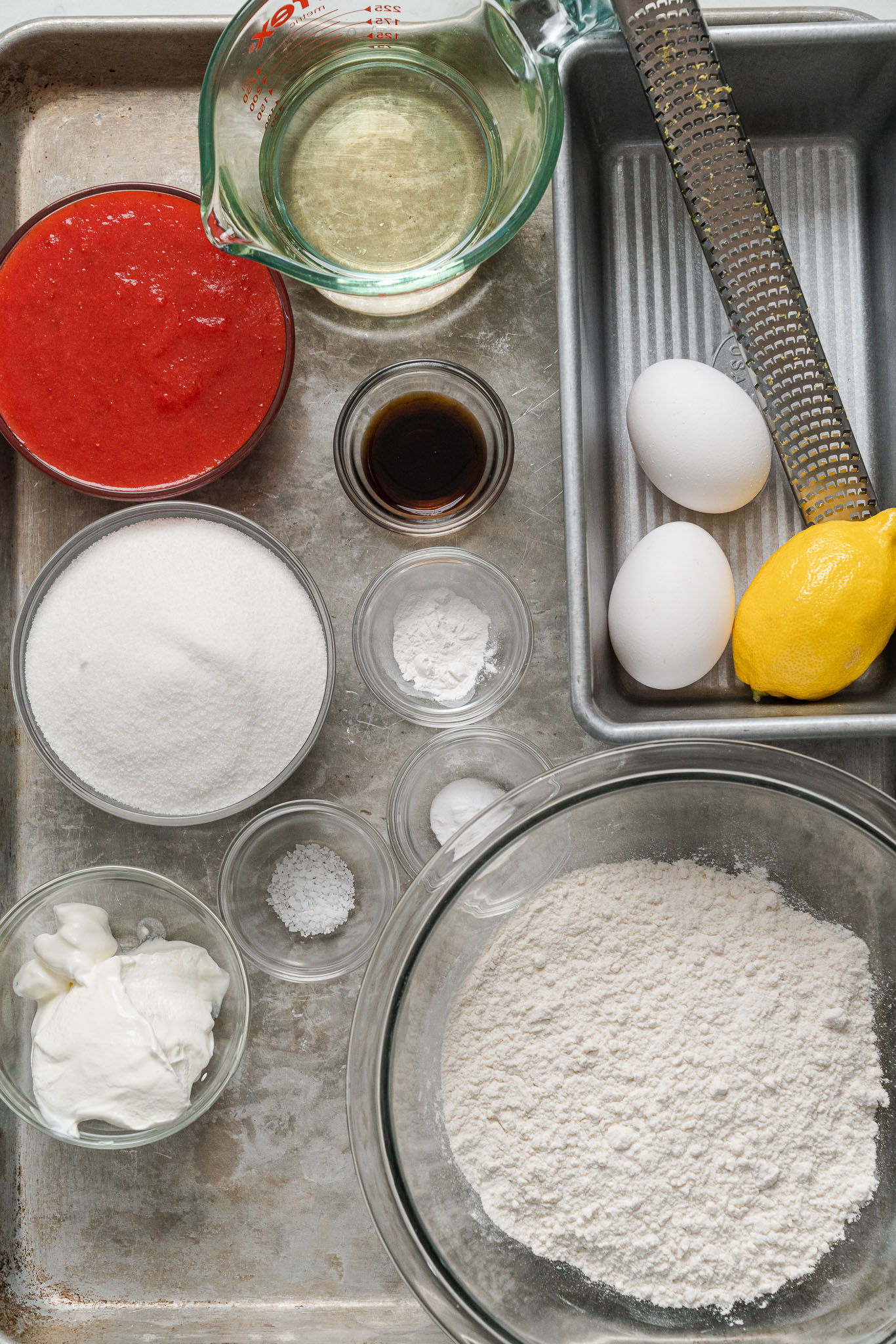 - Whisk the flour, baking powder, baking soda, salt, and lemon zest in a bowl.