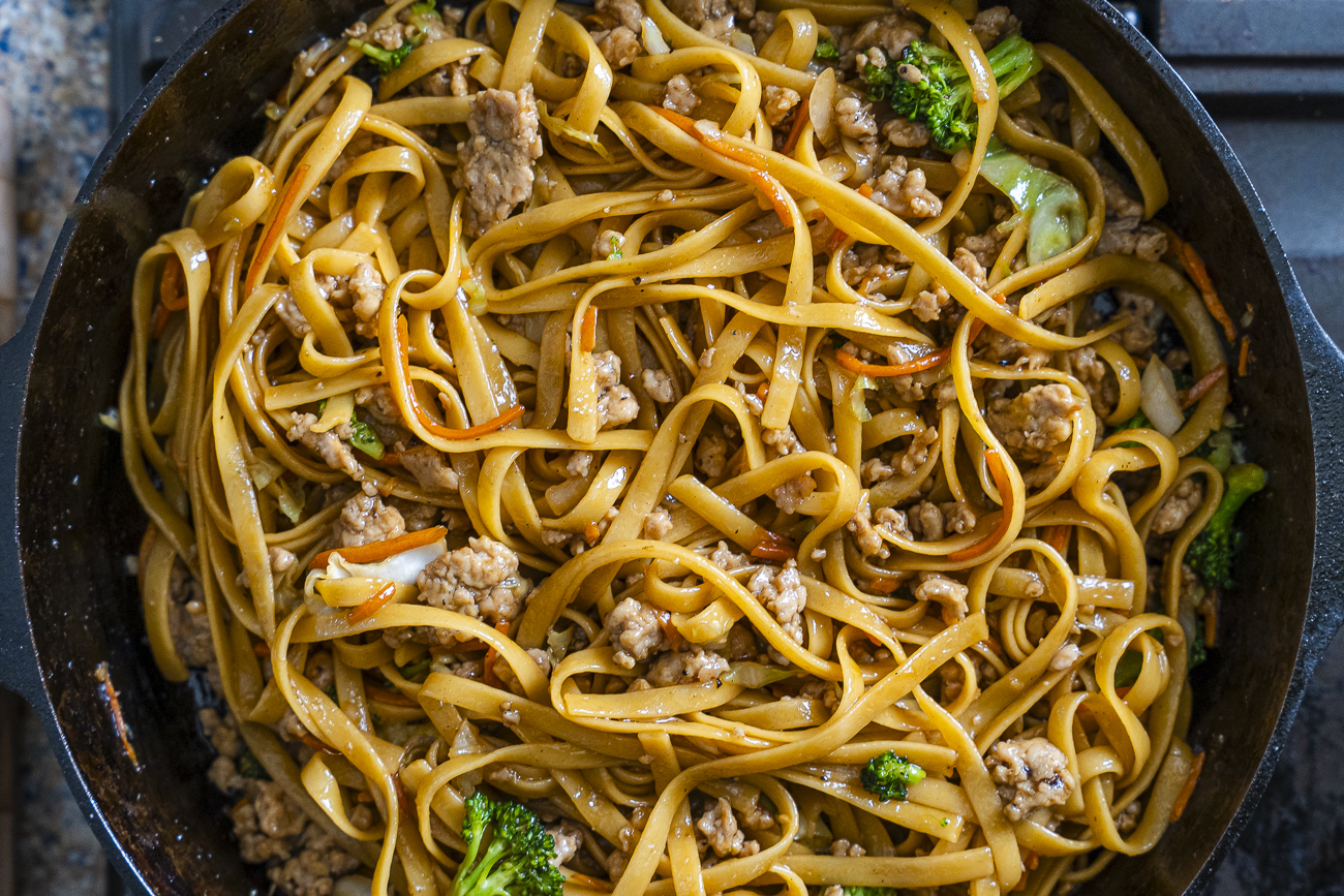 - Chow mein noodles. Fettuccine is a great substitute though!