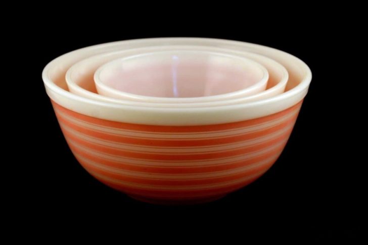 The Stripes pattern was produced from 1965 to 1987 in four colors: blue, pink, sandalwood, and yellow. Though it was originally released in single color sets, later it was released in a combination of blue, pink, and sandalwood, with the larger yellow bowl available for purchase separately. Since the bowls were available to be purchased as a set or separately, it is pretty easy to mix and match and create your own set, even today.