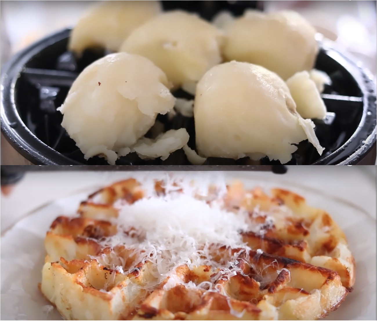 When leftover potatoes from Sunday’s roast haunt your fridge, try waffling them! Peeled and cooked potatoes will get a marvelously crispy crust in a well-greased waffle maker. Top it with cheese, and you have the ultimate loaded potato.