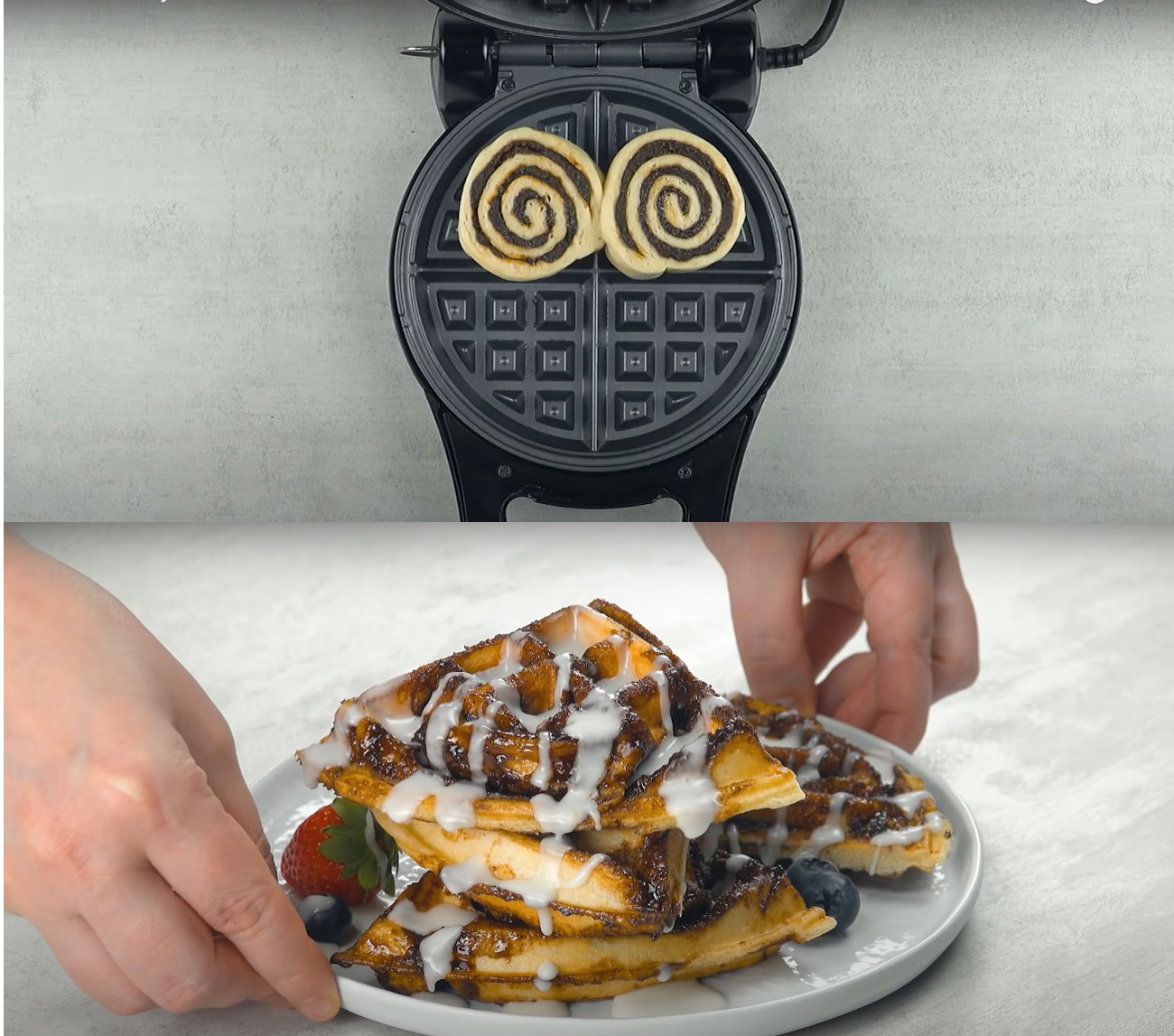 Don’t want to fire up the oven? Turn to your waffle maker! Hefty things like cinnamon rolls and brownie batters are perfect, these may take a little more time, but still, keep an eye on them to prevent them from burning. Top them with softened frosting to have an ultimate gooey dessert experience.