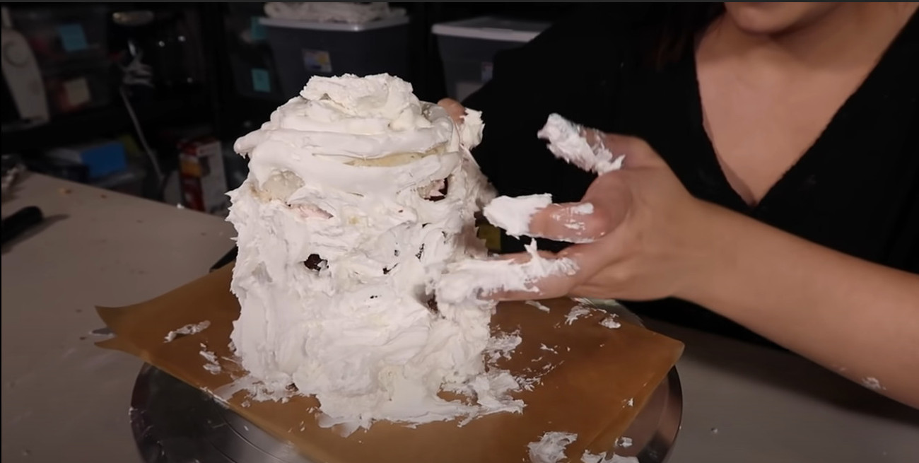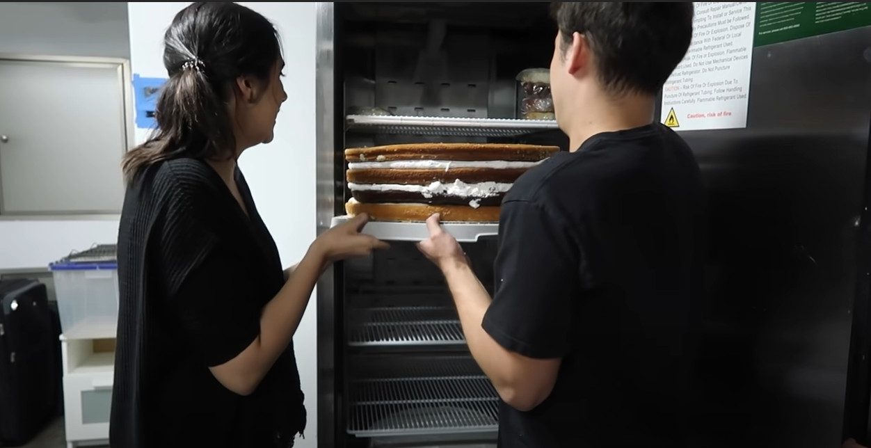 After consulting a famous cake Youtuber, they strategized and mapped out a cake to have 32 cake flavors, all of which had corresponding buttercreams to match each specific flavor. Shortcuts were taken and they added flavorings to cake mixes to speed up the project, but the process of prepping, baking, frosting, and assembling the cake still took over 72 hours.