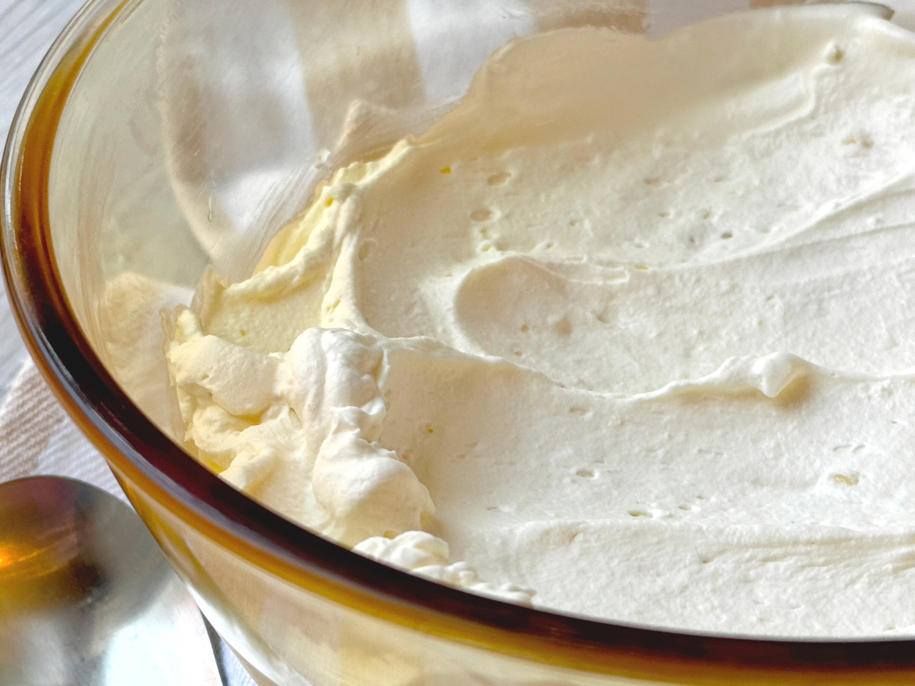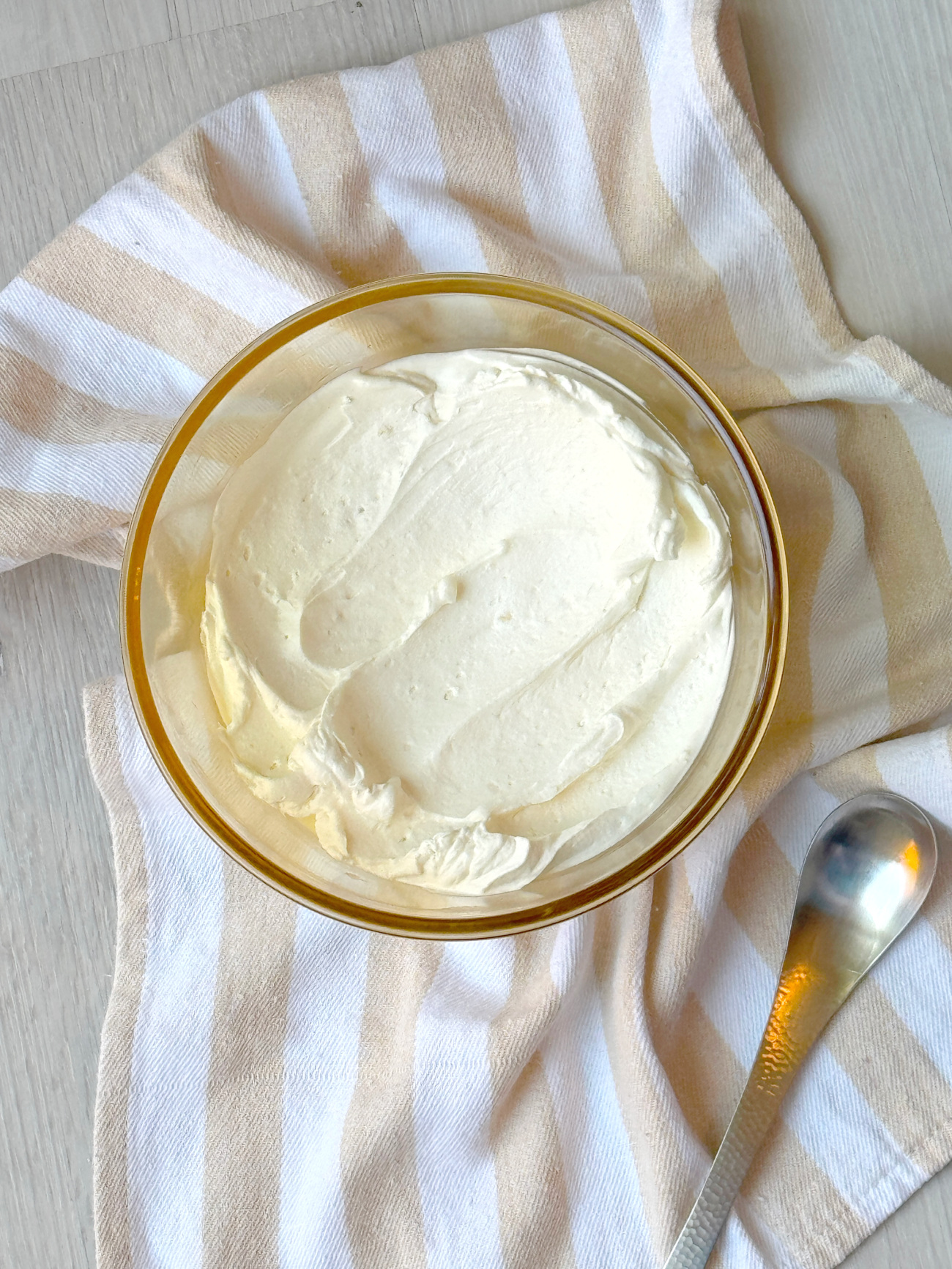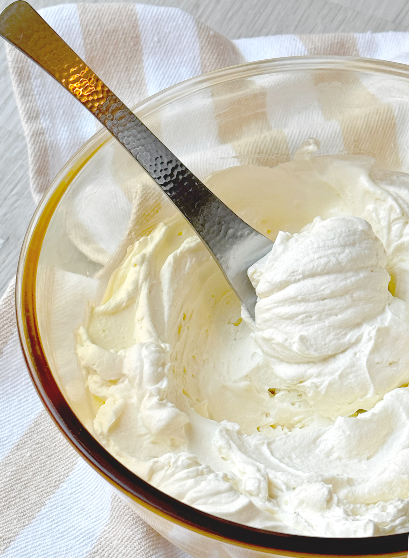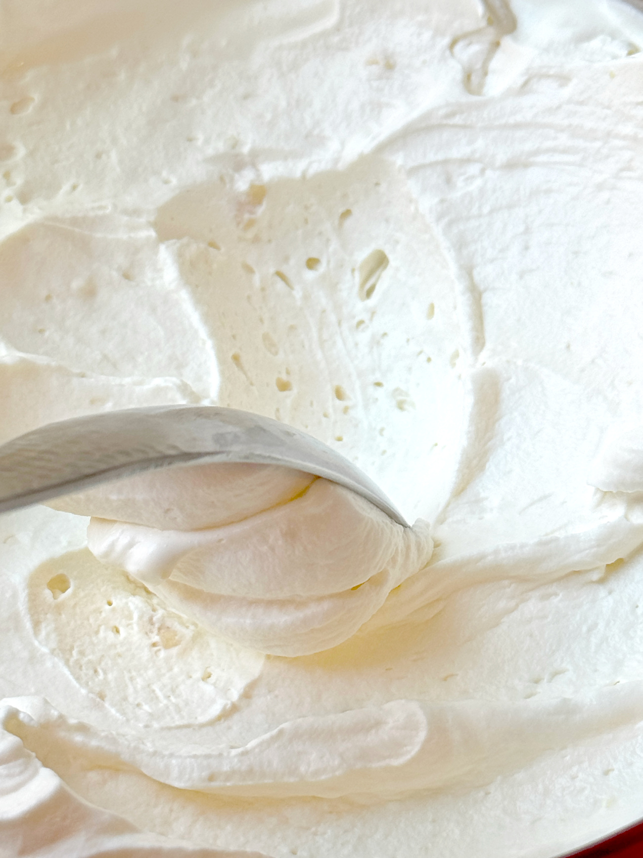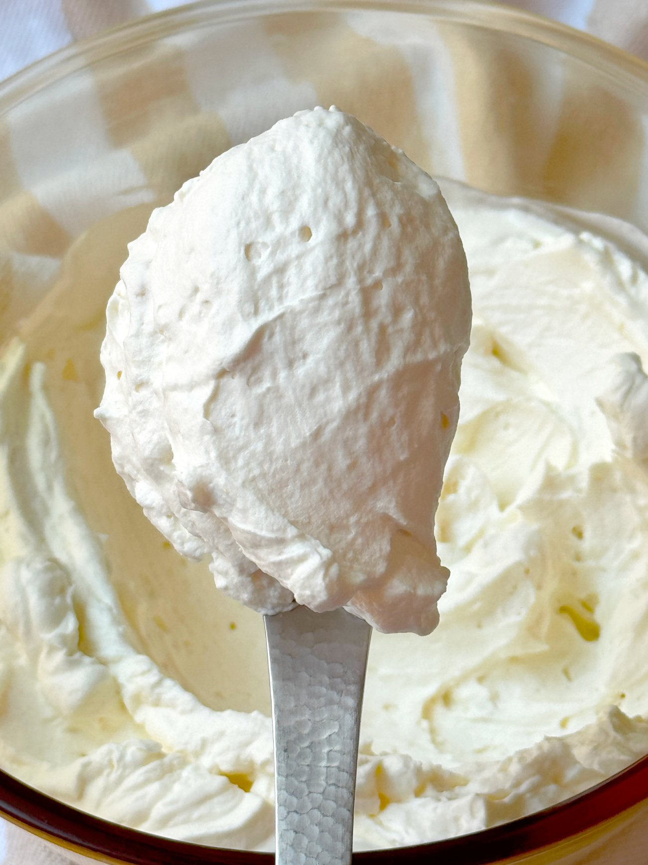 White Chocolate Whipped Cream is a great alternative to classic whipped cream. It pipes beautifully and doesn’t melt so quickly. It is also a great homemade substitute for processed Cool Whip.